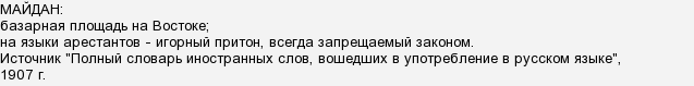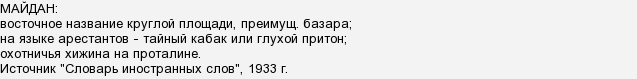 steroid Опубліковано 4 грудня, 2013 Поділитися Опубліковано 4 грудня, 2013 кстати,а почему такое название Майдан-ведь это не славянское слово Майда́н (араб. میدان — meydan, ср. тадж. Майдон — стадион) — арабское по происхождению слово, означающее любую открытую площадку, парк или площадь. В тюркских языках стал употребляться для обозначения главной торговой площади в городе. Майда́н — у поморов ящик для рыбы или используемый вместо рюкзака (синоним «шарабан») Майда́н — в регионе кавказских Минеральных Вод в народе так называют электричку Кисловодск — Минеральные Воды. Железноводск - Бештау. Посилання на коментар Поділитись на інших сайтах Поділитися