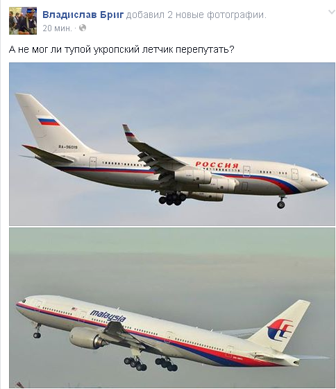 Орiана Опубліковано 17 липня, 2014 Поділитися Опубліковано 17 липня, 2014 «Борт номер один и малазийский Boeing 777 пересекались в одной и той же точке и на одном эшелоне. Это произошло близ Варшавы на 330-м эшелоне на высоте 10100 метров. Борт номер один был там в 16:21 мск, малазийский самолет - в 15:44 мск», - пояснил источник. По его словам, контуры самолётов в целом похожи, линейные размеры также весьма схожи, а раскраска на достаточно отдалённом расстоянии практически идентична. Оригинал статьи: http://russian.rt.com/article/41332#ixzz37kdxY5gb Что, доигрались в войнушку? Путина сбить хотели и прижизненно Героями Украины стать? а вот эта ненормальная уже приплела покушение на самого хуйкина Посилання на коментар Поділитись на інших сайтах Поділитися