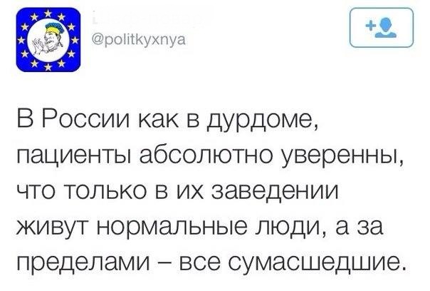 Мастер_Вегард Опубліковано 11 березня, 2017 Опубліковано 11 березня, 2017 Они возмущаются, почему убийце не дают трибуну, чтобы тот мог оправдывать свои преступления. Они требуют равных прав для насильника и честного человека. Чтобы тот и тот имели ОДИНАКОВОЕ право на объяснение своей позиции. Они предлагают узаконить пропаганду насилия, фашизма, нацизма, педофилии и пр. мерзостей. Идиоты? Сомневаюсь! Как то надо держать это стадо в узде, вот и придумана страна навыворот - Упоротая от своей ненависти Россия...